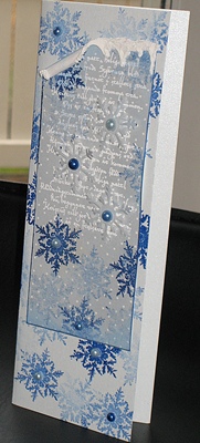 julen börjar tidigt hos inkido med planering så jukort gör jag ca 6 månader om året men jag tröttnar inte utan det kommer hela tiden upp nya idéer och inspiration! Men nu är det ett riktig julrace på inkido bloggen och ute hos alla Dt och vi visar alla väldigt olika typer av kort med samma produkter för att visa mångfalden i användet! Här har jag andvänt stämplar, vintagekort, fodralkort, blommor, spets och klänypor, mönsterpapper band!